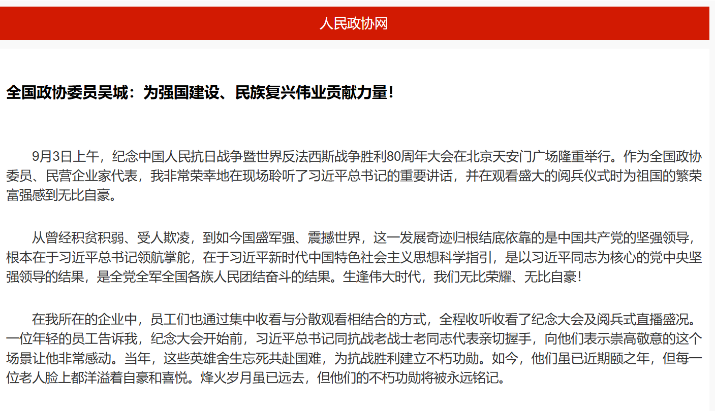 全國政協委員吳城:為強國建設、民族復興偉業(yè)貢獻力量!